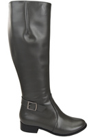 Skórzane Kozaki Damskie Grafitowe Ocieplane Oficerki, Płaskie 225 ElitaBut