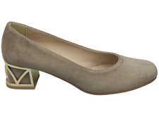 Wygodne Obuwie Damskie Czółenka Beżowe z Ozdobnym Obcasem Skóra naturalna Zamszowej 219 Z ElitaBut