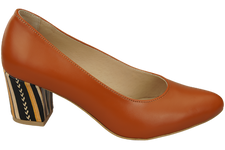 Obuwie Damskie Czółenka Rude Skóra naturalna z Ozdobnym Obcasem 158 ElitaBut