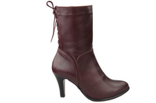 Obuwie Botki Damskie zima skóra naturalna Bordowe 977 Z ElitaBut