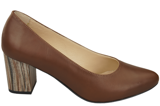 Obuwie Damskie Czółenka Brązowe Skóra naturalna z Ozdobnym Obcasem 157 ElitaBut