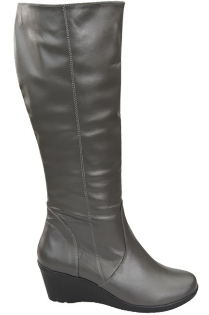Obuwie Kozaki Damskie Koturna skóra naturalna Grafitowe 177 ElitaBut