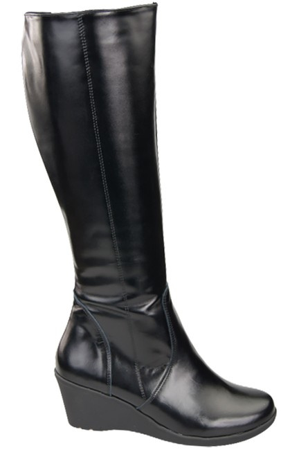 Obuwie Kozaki Damskie Koturna skóra naturalna Czarne Błyszczące 177 ElitaBut