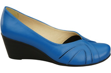Buty na Koturnie Niebieskie Czółenka Damskie z Naturalnej Skóry 828 ElitaBut