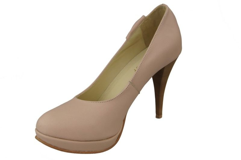 Obuwie Damskie Czółenka na Podsuwce skóra naturalna Róż Pudrowy 976 ElitaBut
