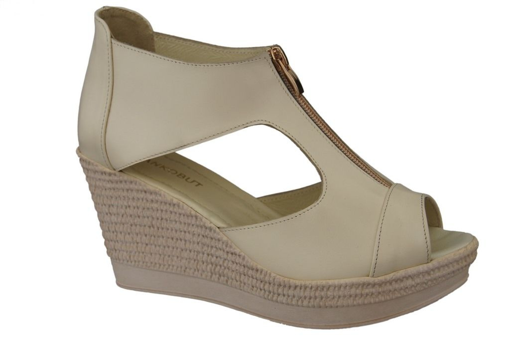 Obuwie Sandały Damskie Koturna skóra naturalna Beżowe 993 ElitaBut