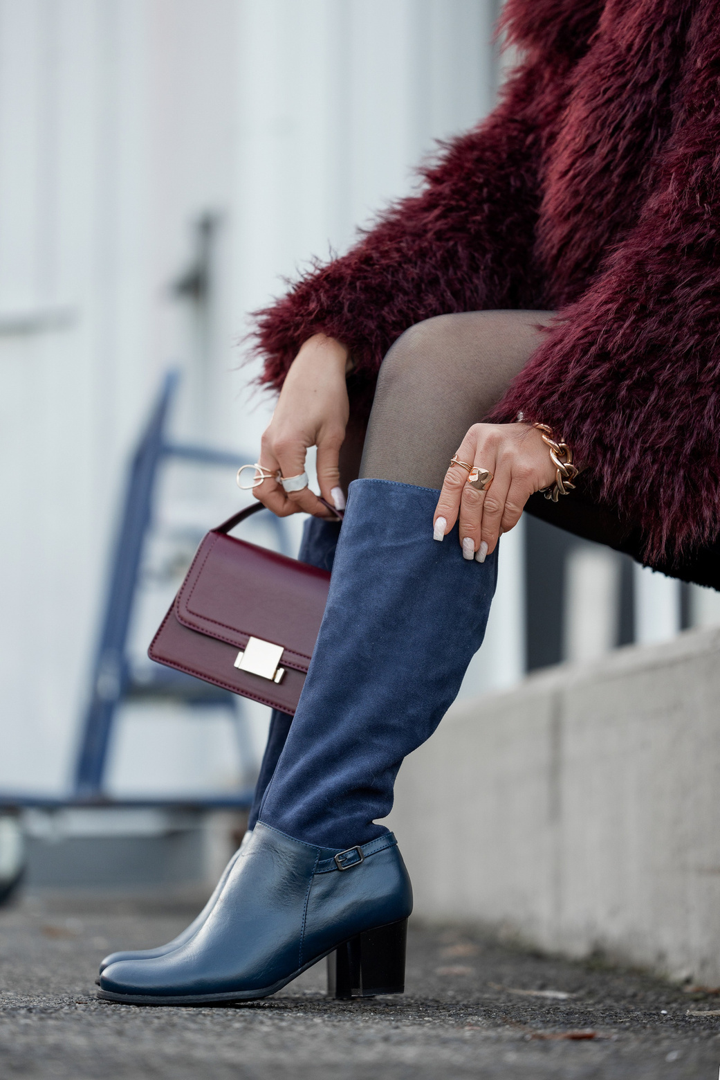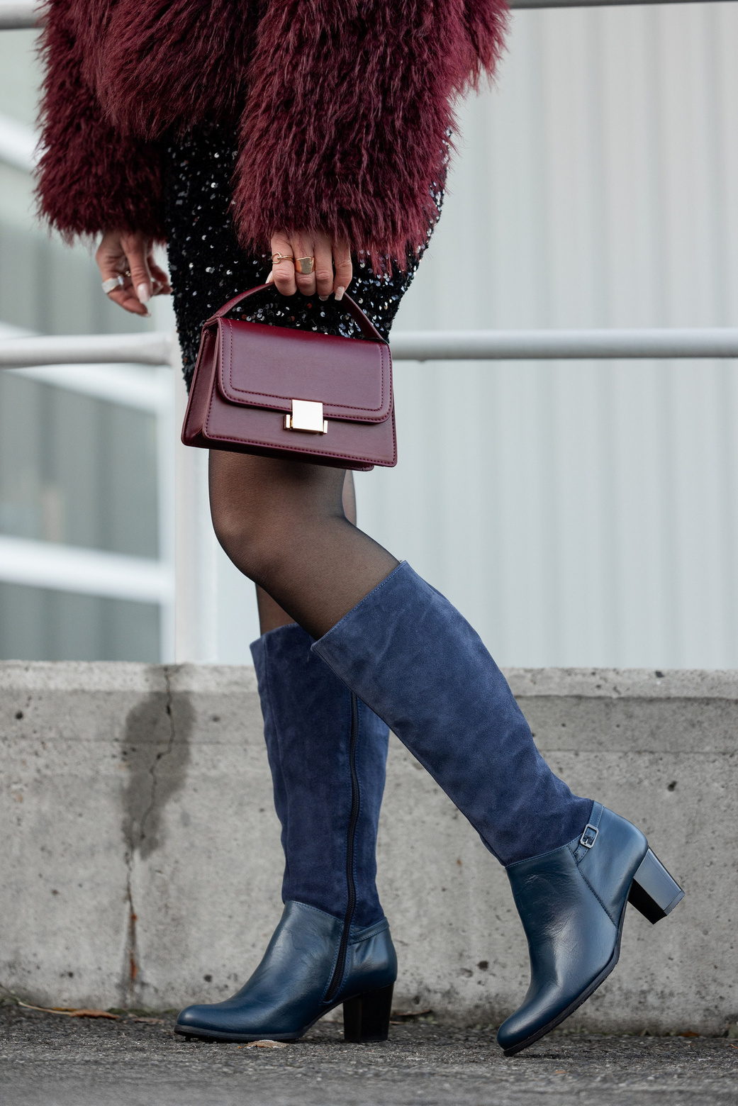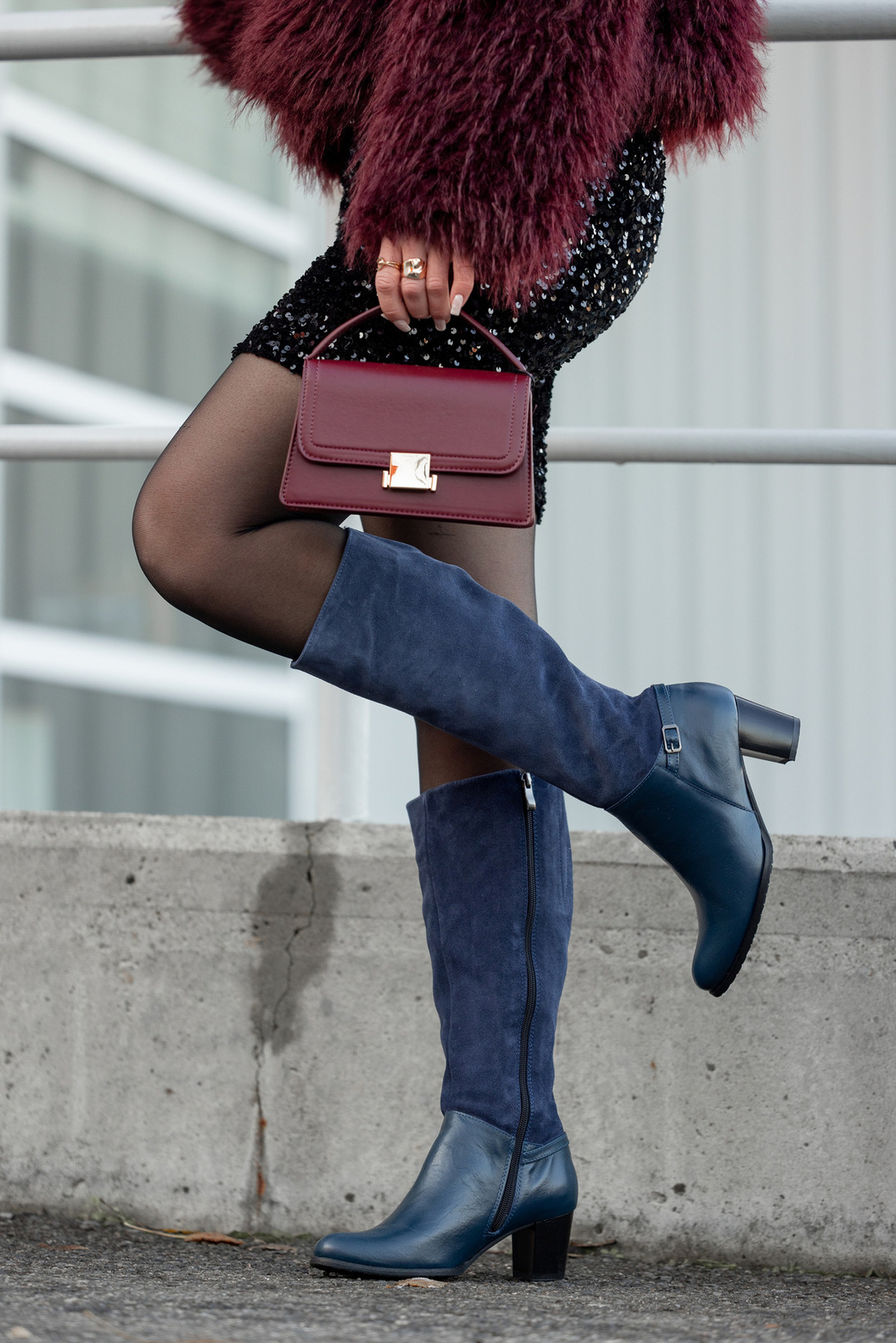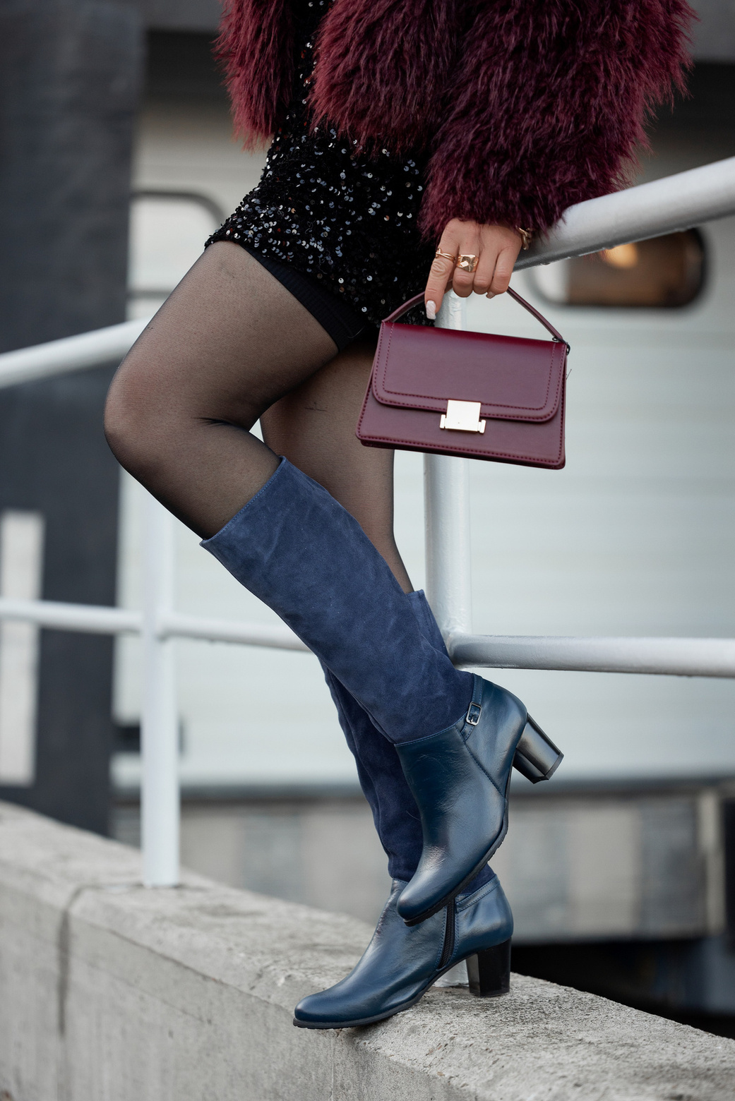 - Women's boots made of high-quality top-grain and velor leather look very elegant.