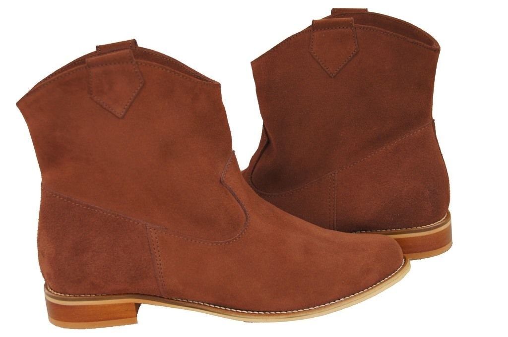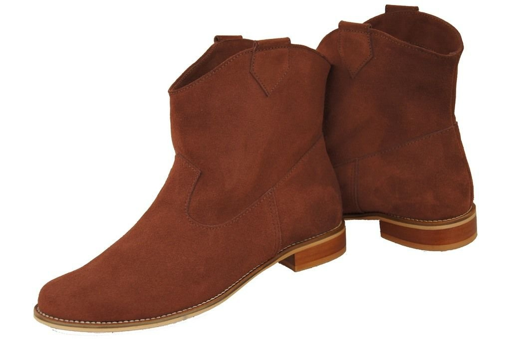 Obuwie Botki Damskie Wiosna / Jesień skóra naturalna welurowa Kasztanowe 132 L ElitaBut