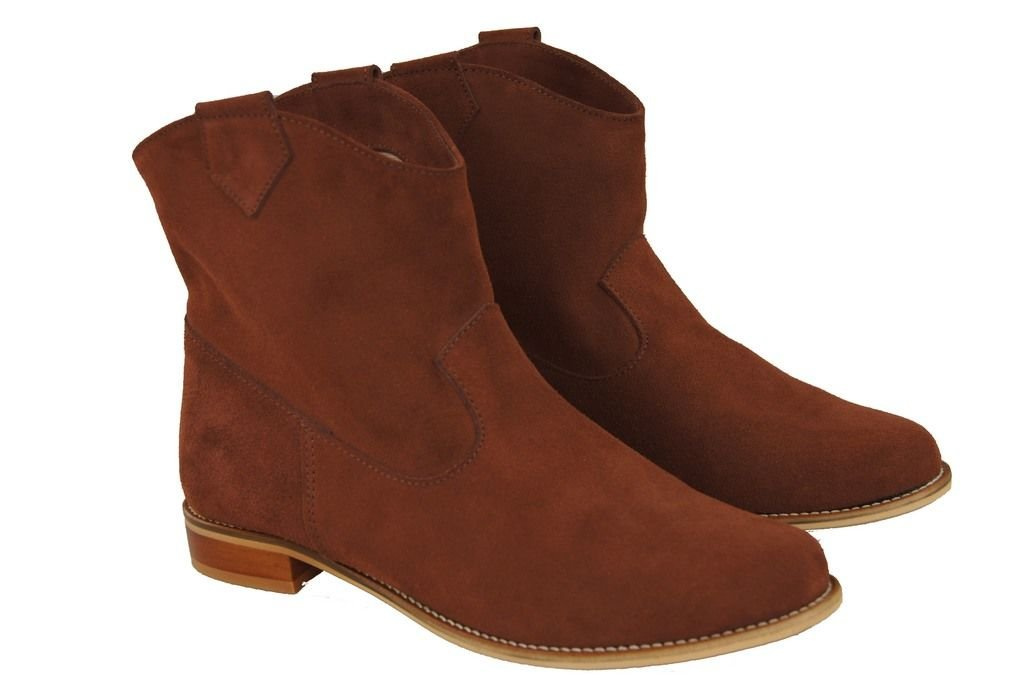 - Botki damskie wykonane z wysokiej jakości skóry naturalnej welurowej