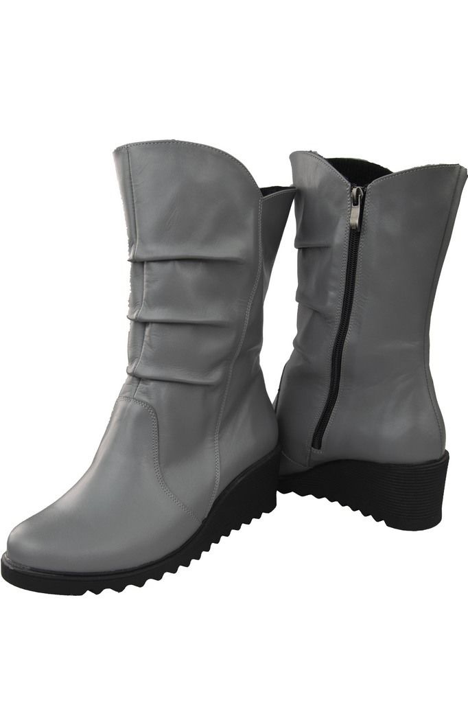 Obuwie Botki Damskie Koturna Zima skóra naturalna Popiel 140 ElitaBut