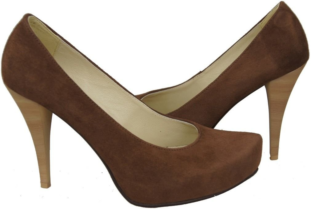 Obuwie Damskie Czółenka Brąz Skóra naturalna Zamszowa 644 ElitaBut