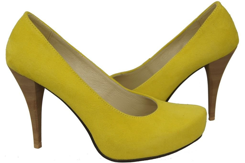 Obuwie Damskie Czółenka Cytronowy Skóra naturalna Zamszowa 644 ElitaBut