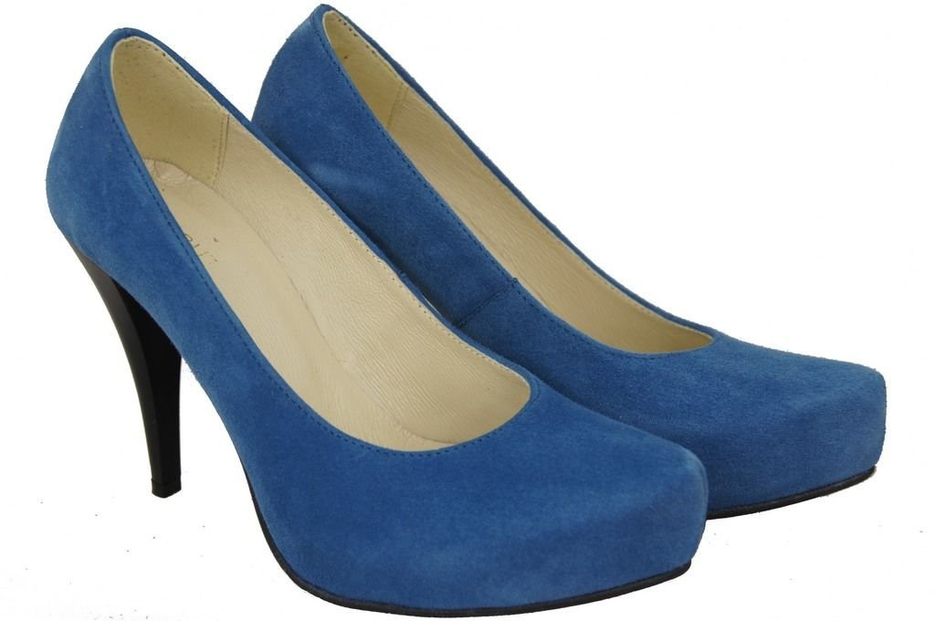 Obuwie Damskie Czółenka Niebieskie Skóra naturalna Zamszowa 644 ElitaBut
