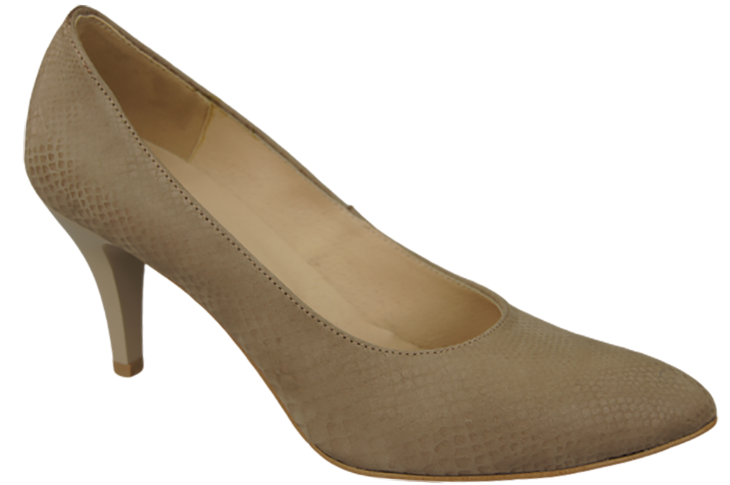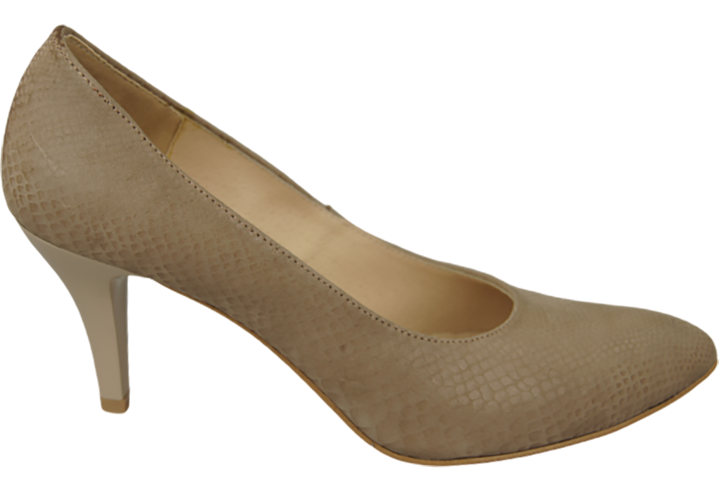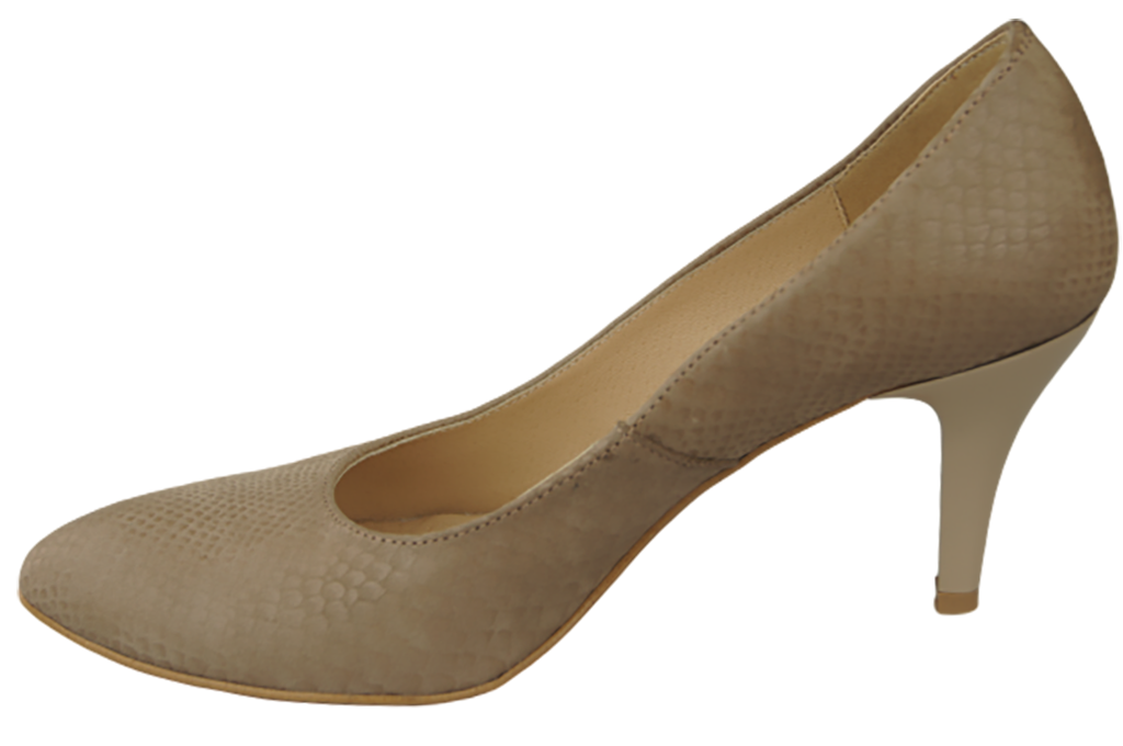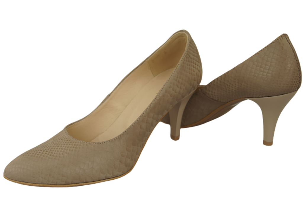 - Women's pumps made of high-quality natural embossed leather delight with a fashionable pattern imitating snake skin, thanks to which the classic cut acquires a modern, intriguing character.