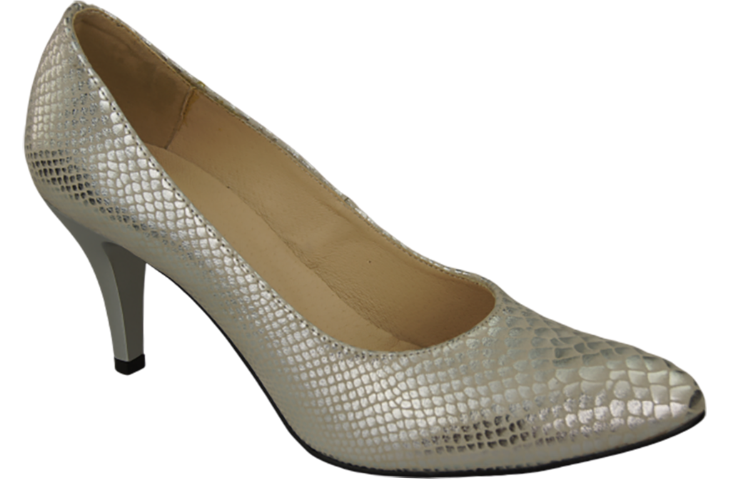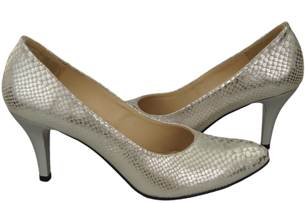 - Women's pumps made of high-quality natural embossed leather delight with a fashionable pattern imitating snake skin, thanks to which the classic cut acquires a modern, intriguing character.