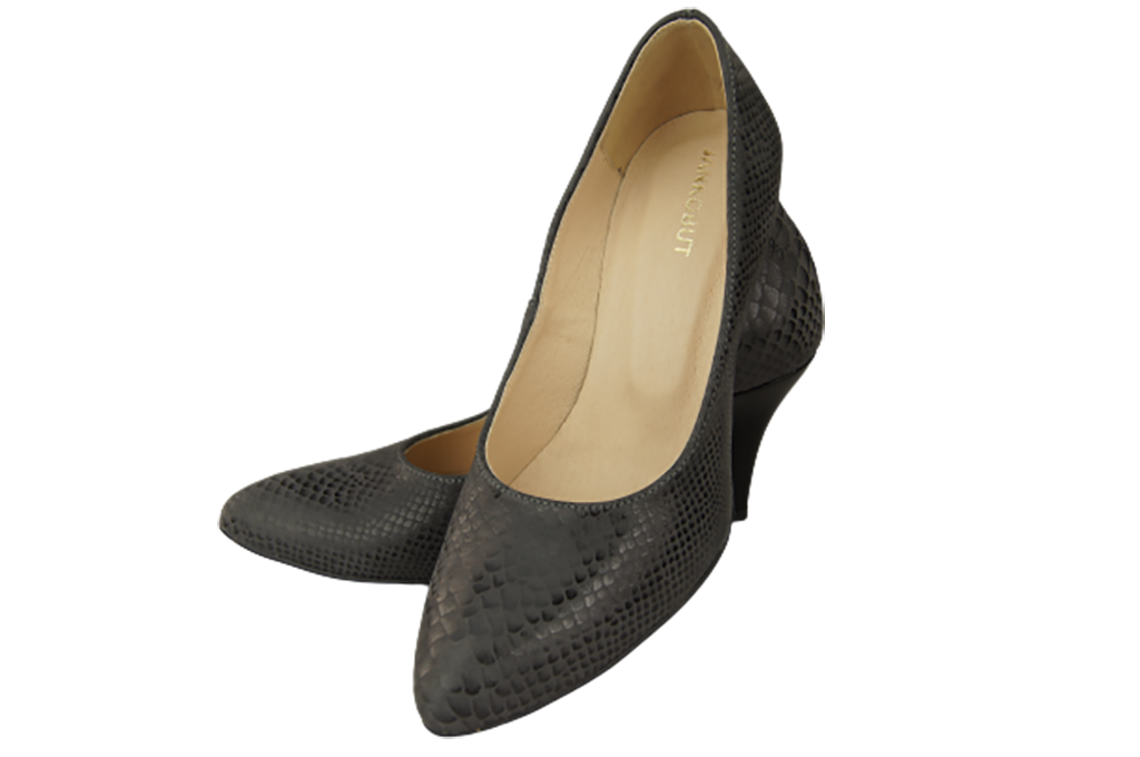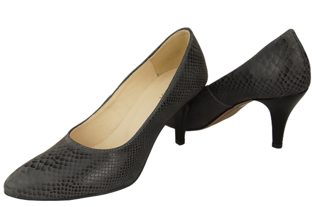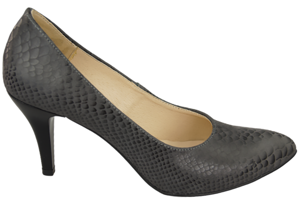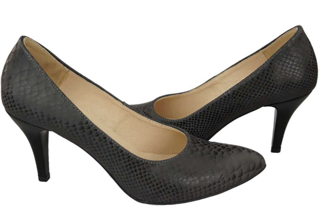 - Women's pumps made of high-quality natural embossed leather delight with a fashionable pattern imitating snake skin, thanks to which the classic cut acquires a modern, intriguing character.