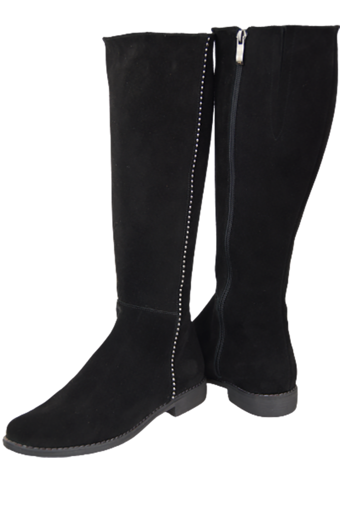 - Women's boots made of high-quality velor leather look very elegant.