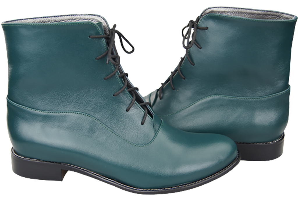 • Minimalist women's boots with flat heels made of high-quality natural grain leather