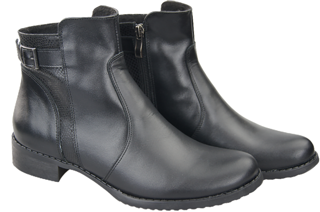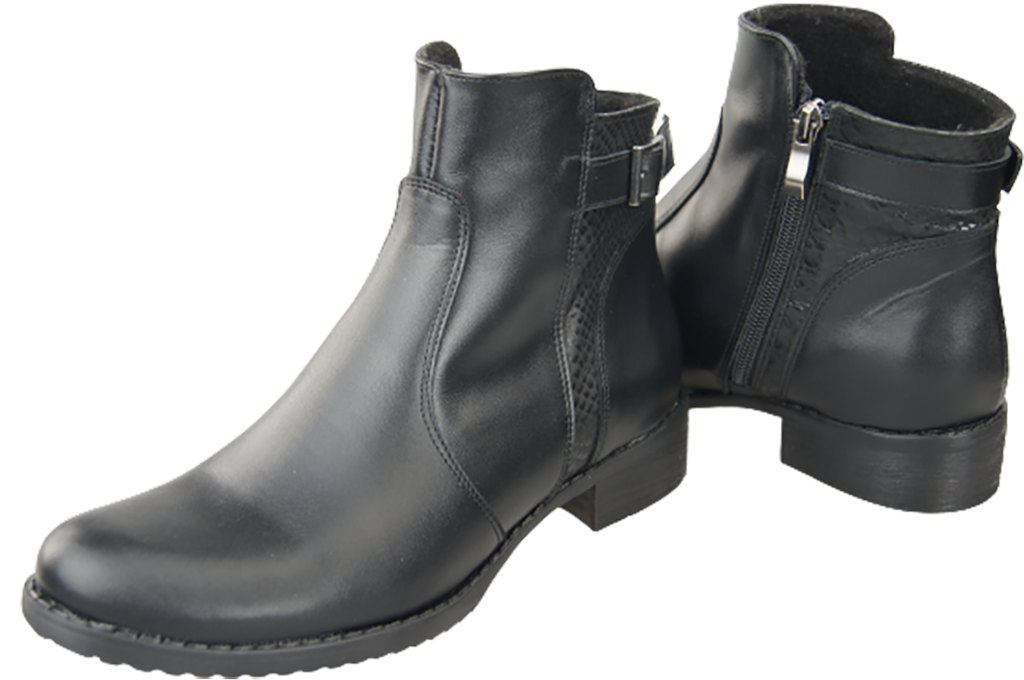 - Women's boots are made of natural grain leather combined with natural embossed leather with a snake skin pattern.