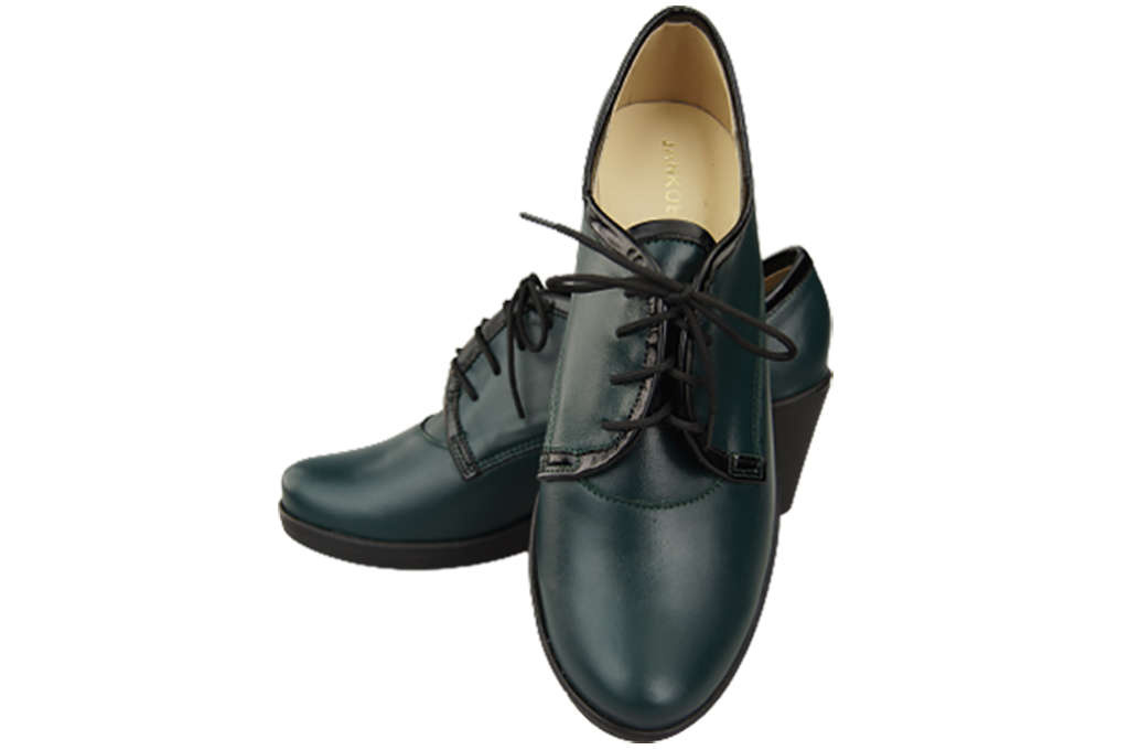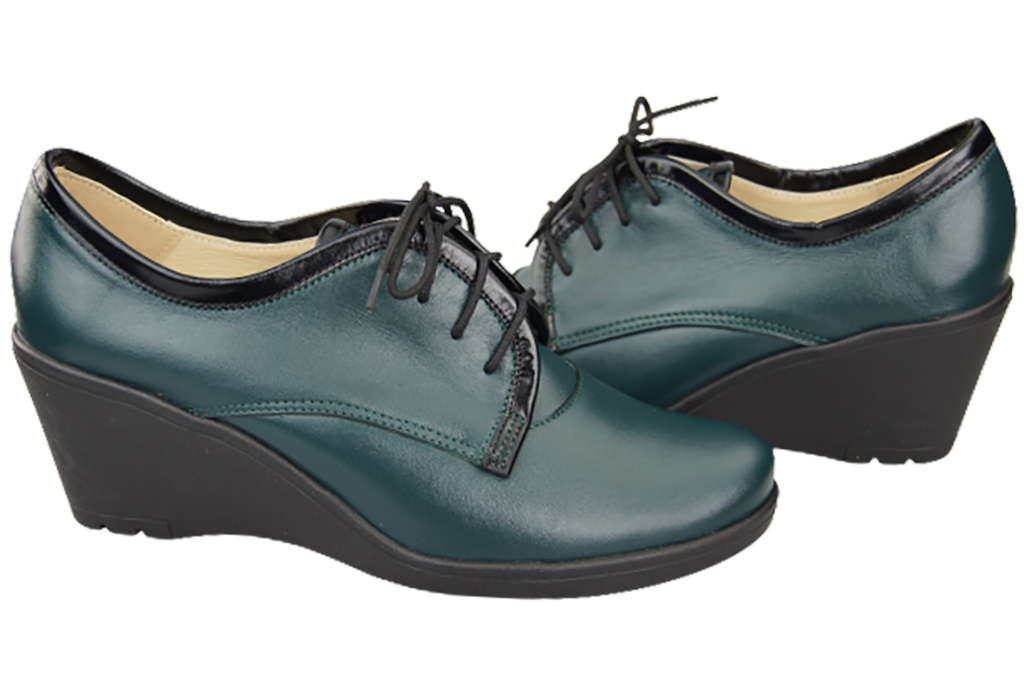• Comfortable women's shoes with a wedge heel have a shapely upper made of high-quality natural grain leather.