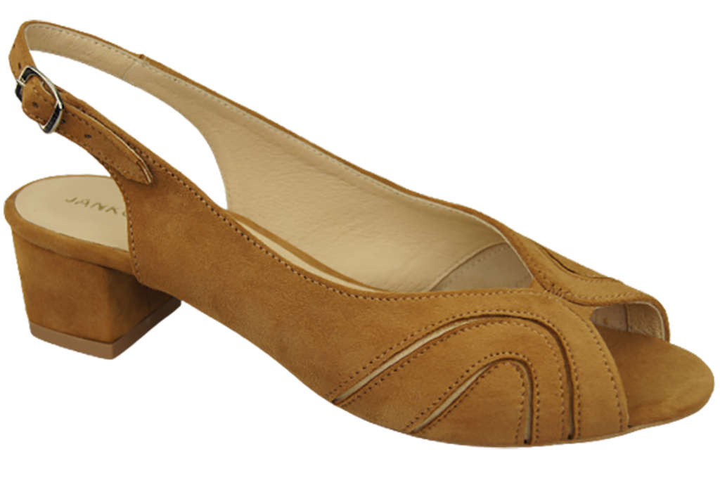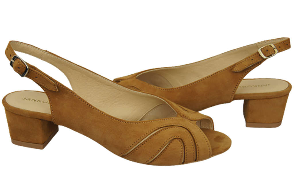 - Stability and support for the feet is ensured by a perfectly contoured low heel covered with natural leather.