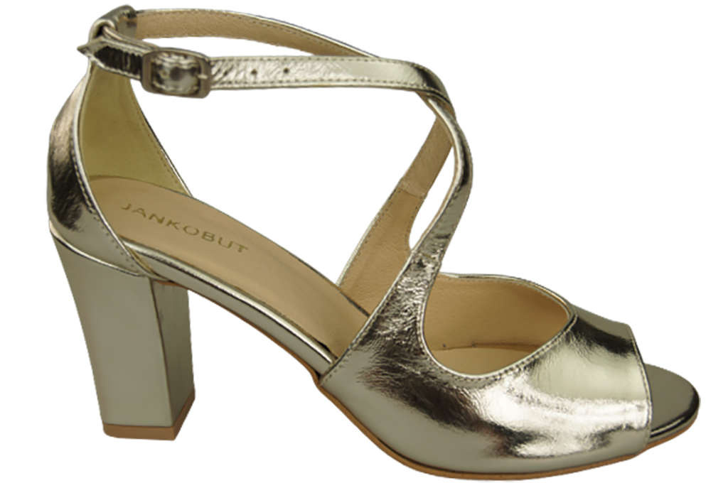 - A perfectly shaped square heel covered with leather ensures stabilization and comfort with each step.