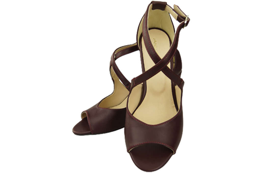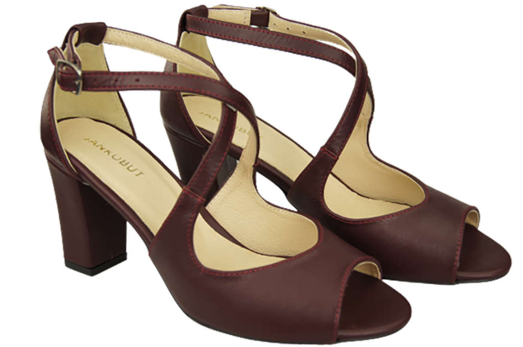 - A perfectly shaped square heel covered with leather ensures stabilization and comfort with each step.