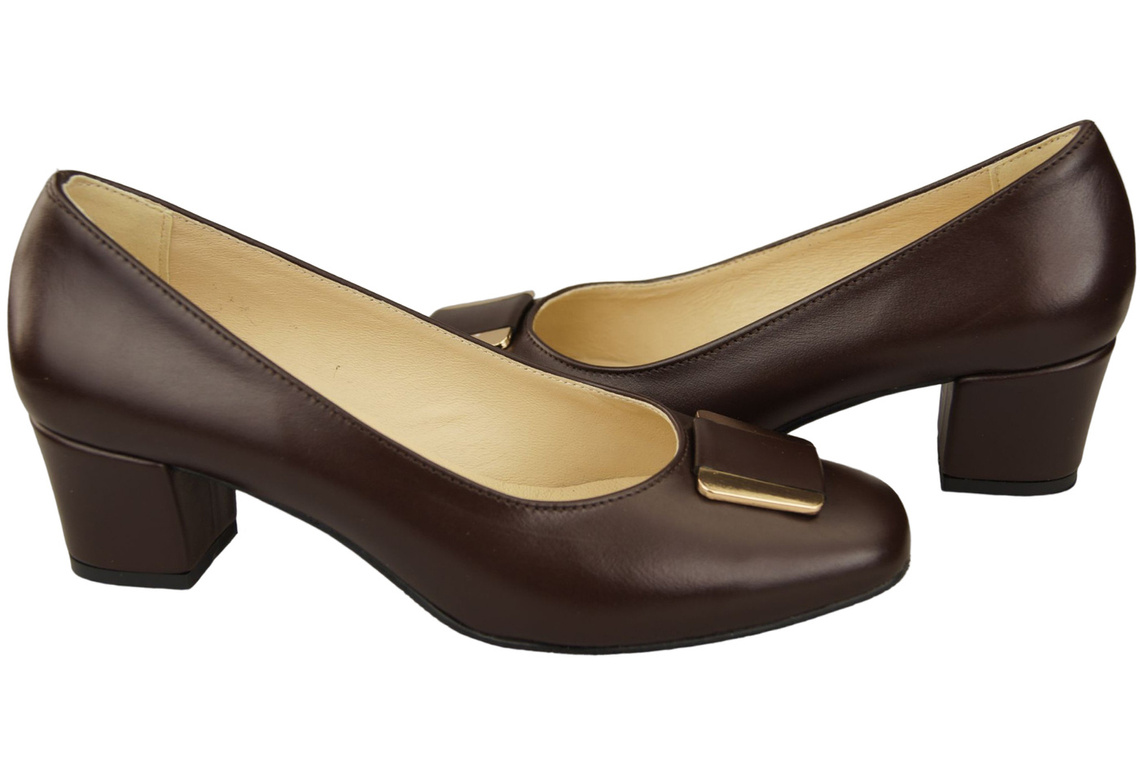 - Shoes set on a low, wide heel guarantee comfort of use and a stylish look.