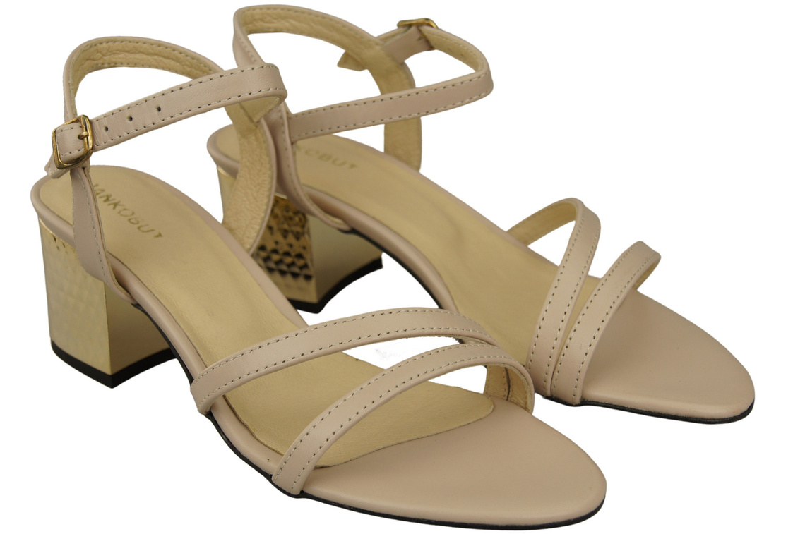 - Our sandals are synonymous with luxury and refined style, which are distinguished by a beautiful, shiny, low, wide heel and straps that fit beautifully on the leg.