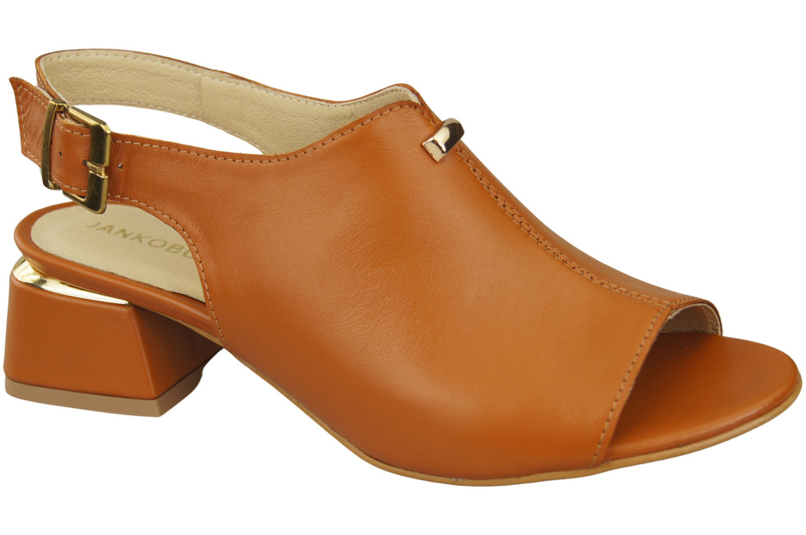 - Unique design: This model of sandals is distinguished by a coated leather heel, which gives them a subtle, luxurious look. The gold decoration on the heel makes them shine and attracts attention, and the gold buckle gives them a unique character.