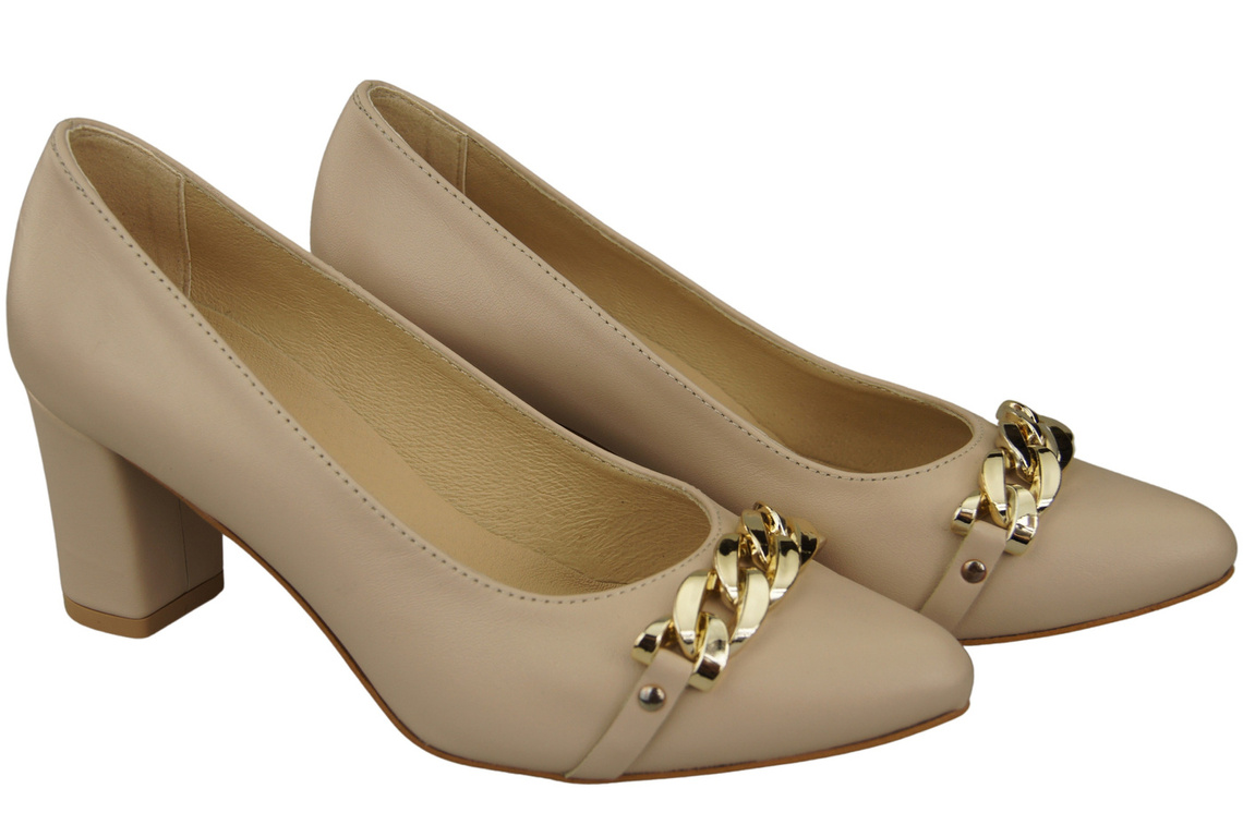 Classic Women's Pumps Shoes made of Natural Leather with a Gold Decorative Chain 200 ElitaBut