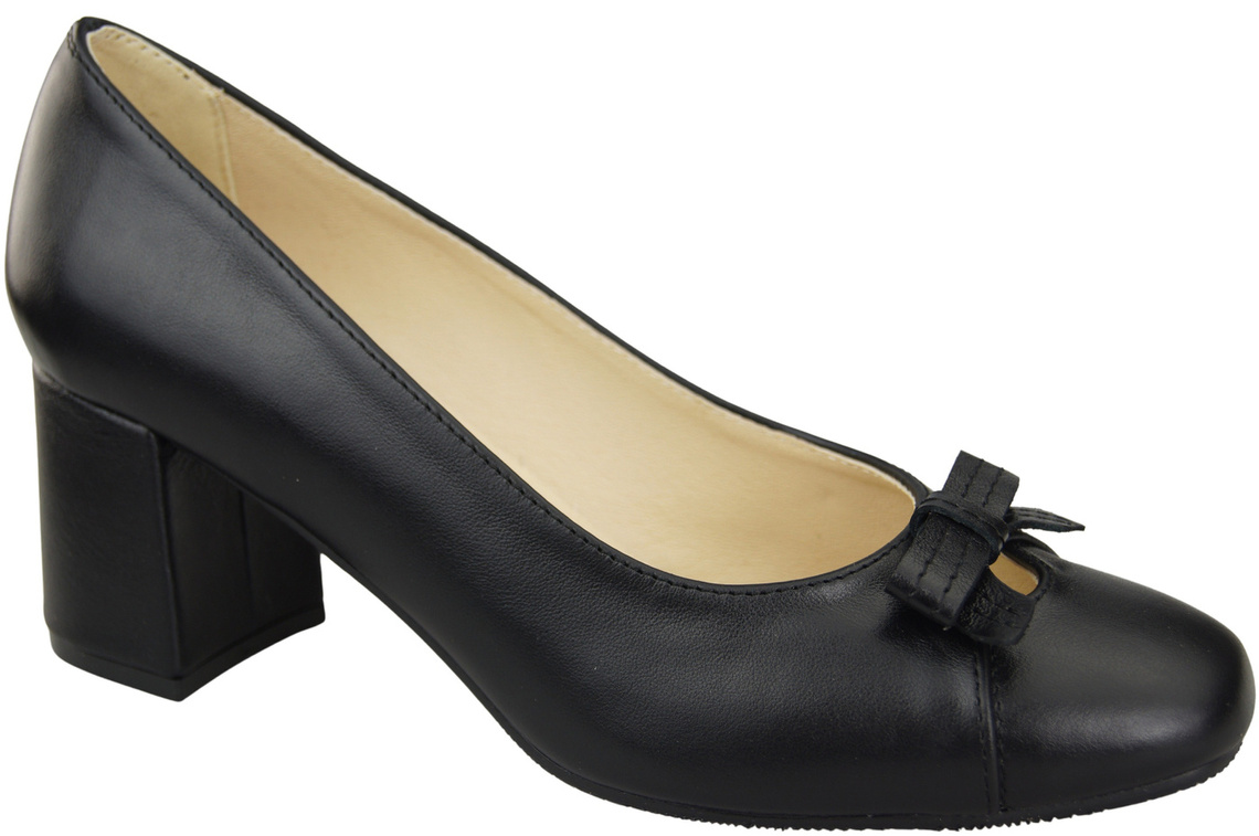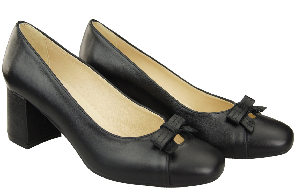 - The shoes are distinguished by a delicate bow, adding subtlety and feminine charm to them. The low heel, also covered with natural leather, ensures stability and comfort all day long, regardless of the circumstances.