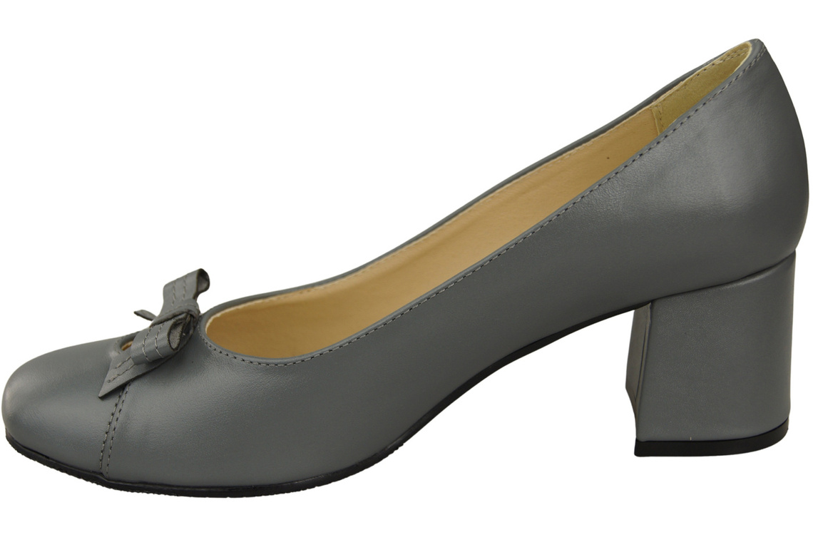 - The shoes are distinguished by a delicate bow, adding subtlety and feminine charm to them. The low heel, also covered with natural leather, ensures stability and comfort all day long, regardless of the circumstances.