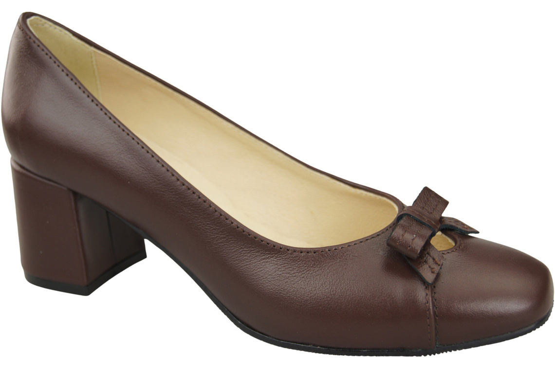 - The shoes are distinguished by a delicate bow, adding subtlety and feminine charm to them. The low heel, also covered with natural leather, ensures stability and comfort all day long, regardless of the circumstances.