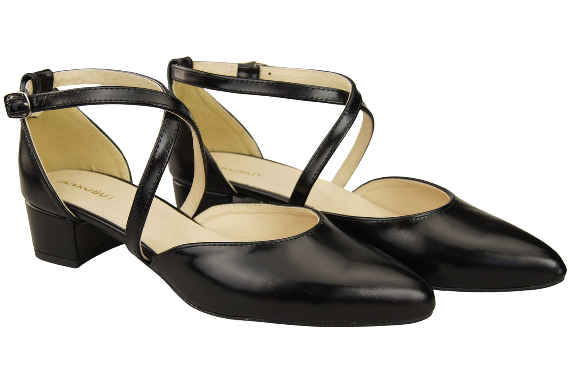 - Elegant women’s sandals made entirely of genuine leather. The model features crossed straps and a low, stable heel covered with leather. Perfect for both everyday and evening outfits, they offer comfort and elegance.