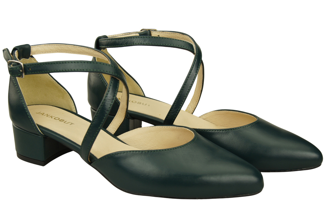 • Elegant women’s sandals made entirely of genuine leather. The model features crossed straps and a low, stable heel covered with leather. Perfect for both everyday and evening outfits, they offer comfort and elegance.
