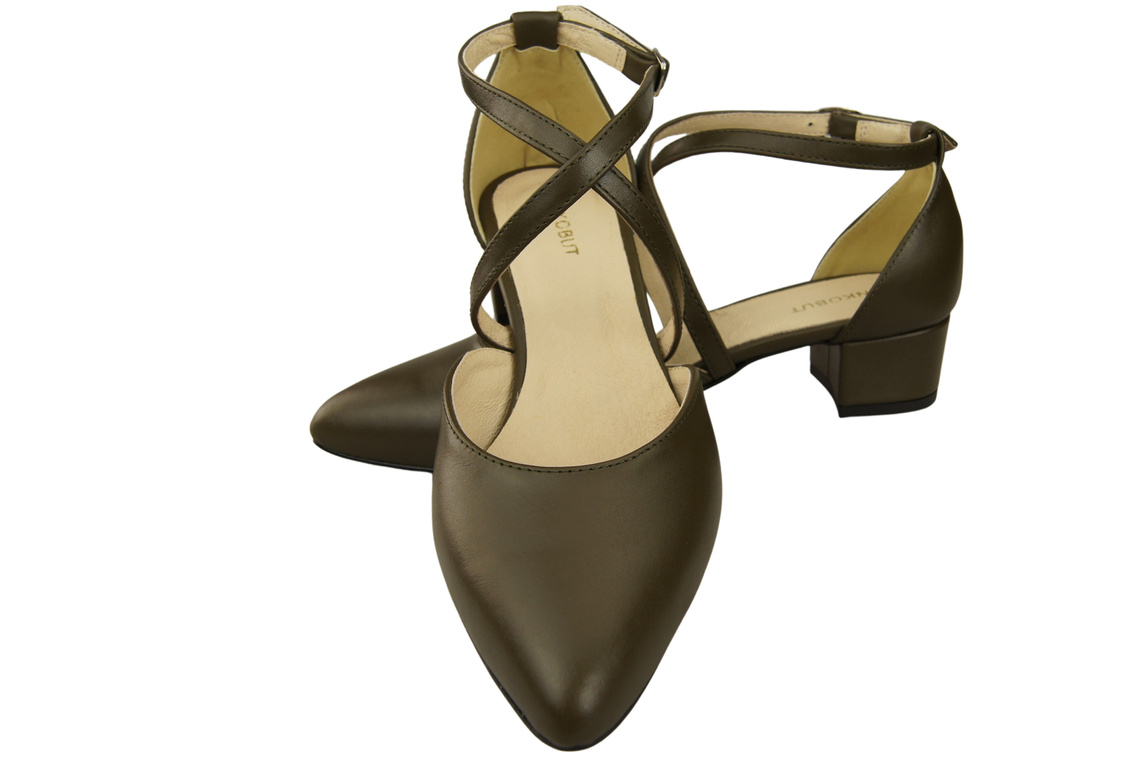 - Elegant women’s sandals made entirely of genuine leather. The model features crossed straps and a low, stable heel covered with leather. Perfect for both everyday and evening outfits, they offer comfort and elegance.