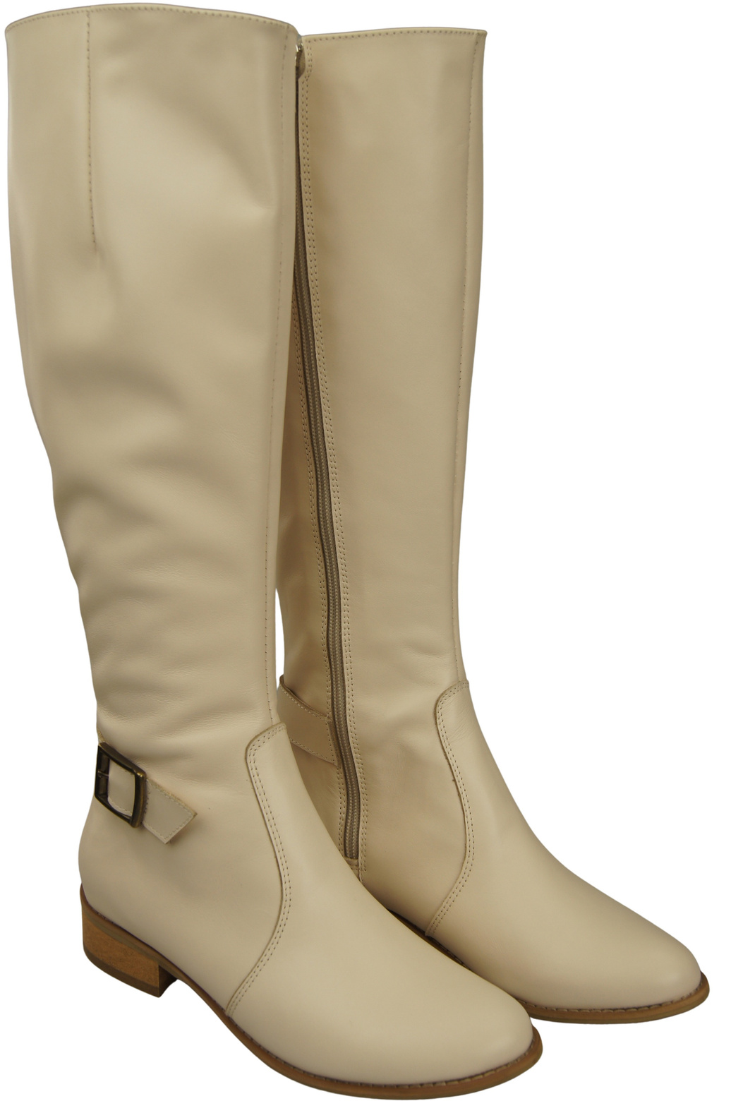 These leather officer boots deliver timeless style and everyday comfort for cooler days. Premium smooth leather drapes beautifully along the calf, while the flat sole and low heel ensure stability all day long. Inside, a soft warm lining keeps you cozy without adding bulk. The full-length inside zipper makes them easy to put on, and the decorative strap with a metal buckle completes the elegant look.