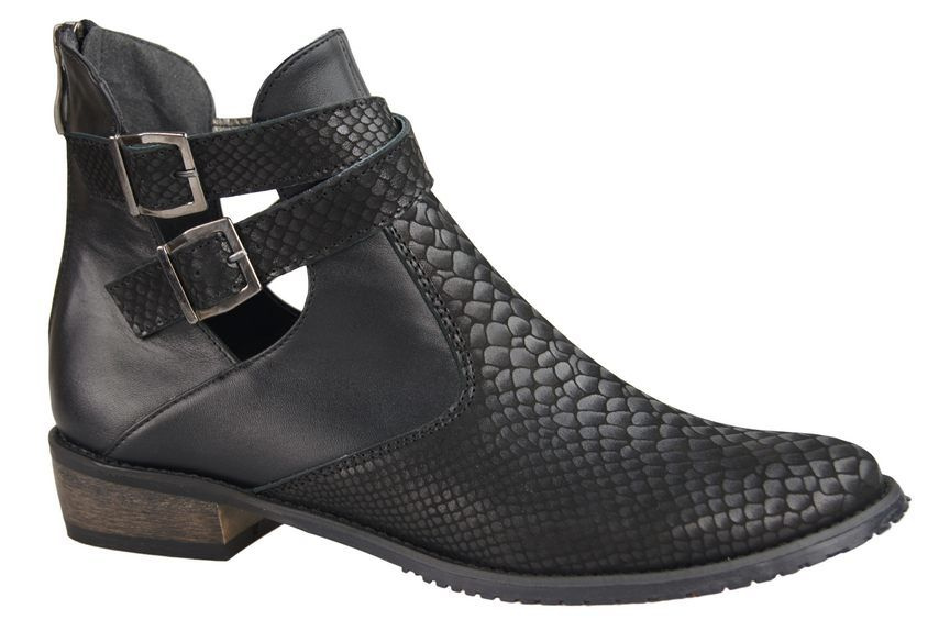 Obuwie Botki Damskie skóra naturalna Czarne Łuska 931 ElitaBut
