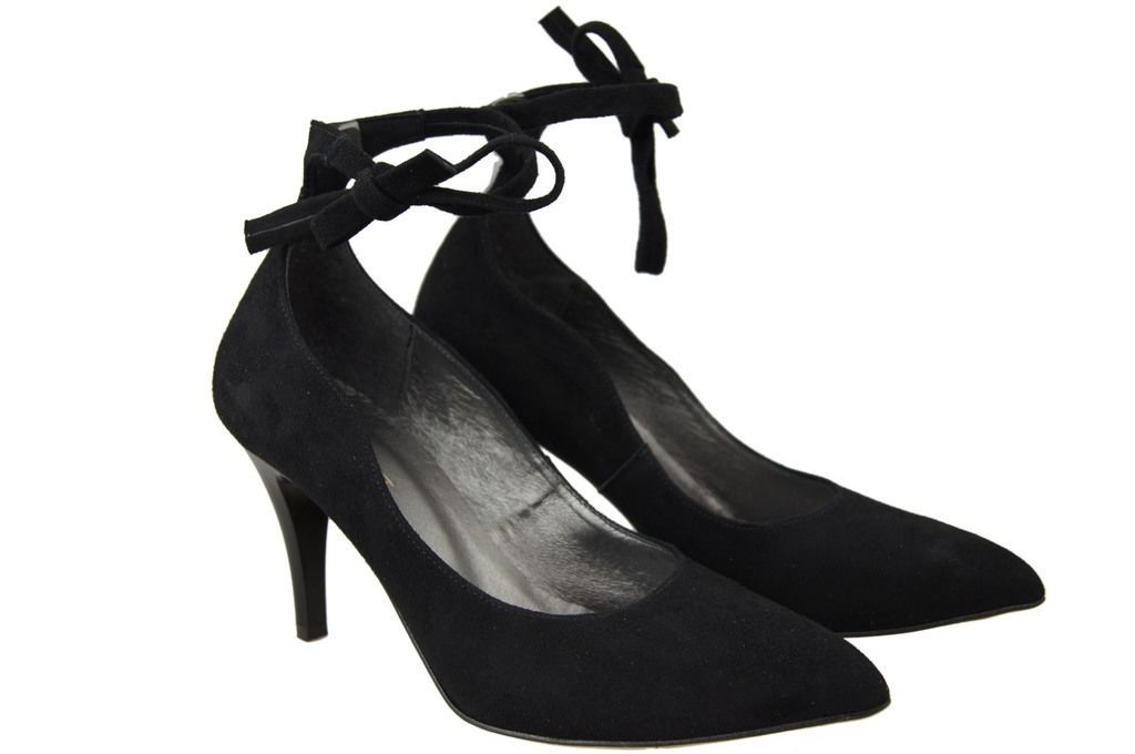 Obuwie Damskie Czółenka skóra naturalna zamszowa Czarne 983 ElitaBut