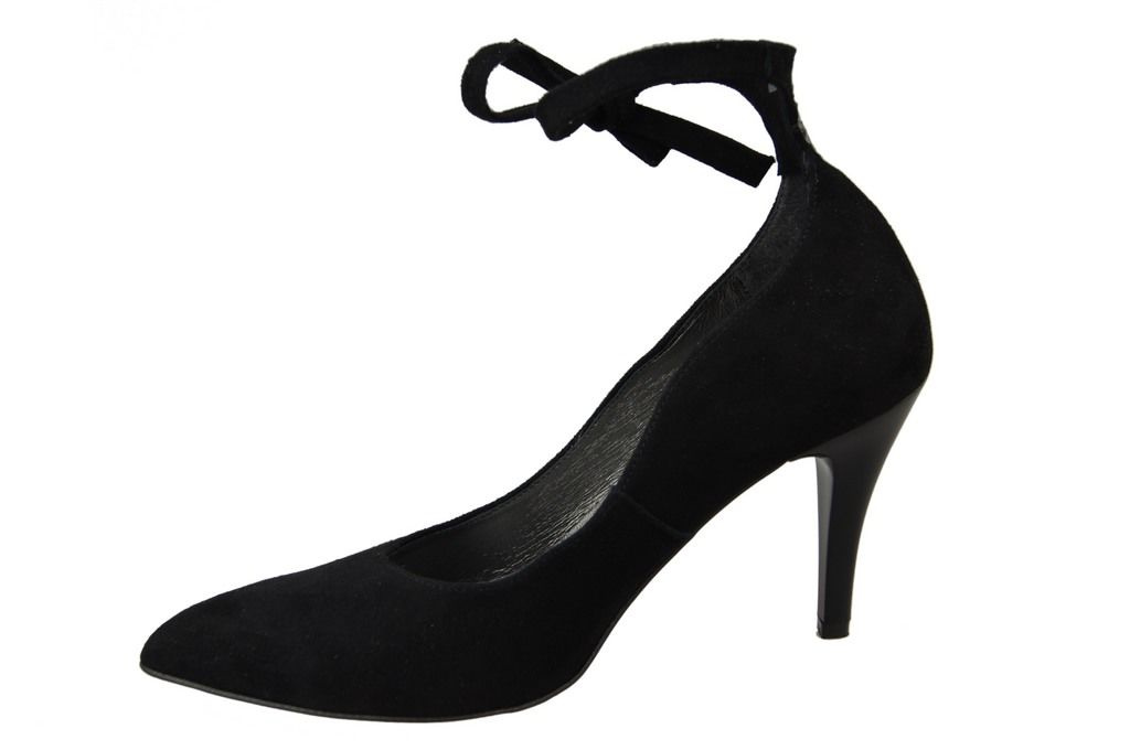- Czółenka damskie wykonane z wysokiej jakości skóry naturalnej welurowej