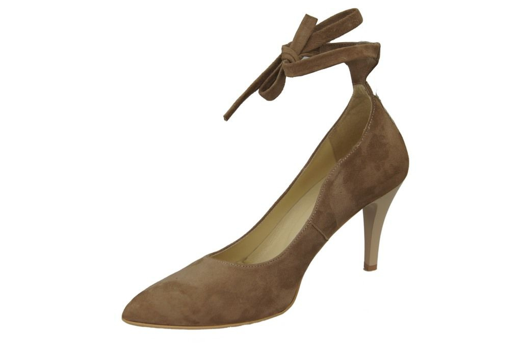 Obuwie Damskie Czółenka skóra naturalna zamszowa Cappuccino 983 ElitaBut