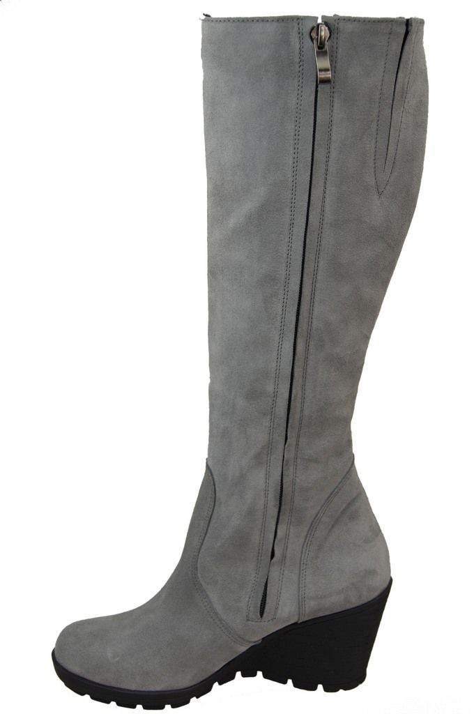 Opinie o Obuwie Kozaki Damskie Koturna Popielate skóra naturalna welurowa 745 ElitaBut