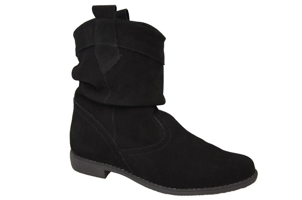 - Botki damskie wykonane z wysokiej jakości skóry naturalnej welurowej