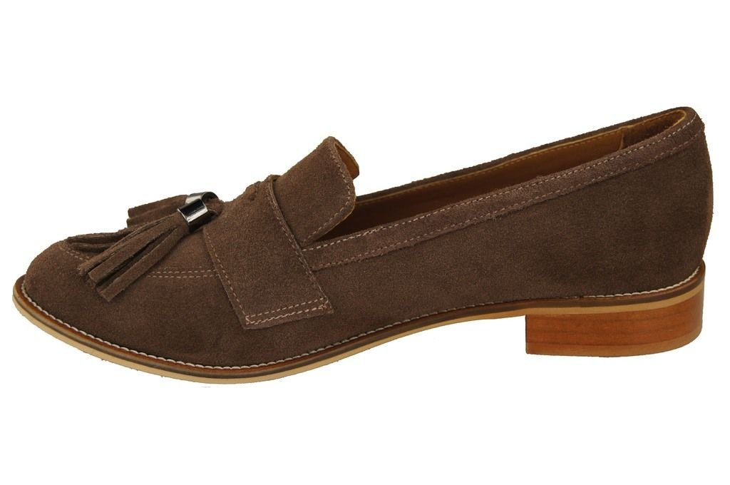 Obuwie Mokasyny Damskie Skóra Naturalna Welurowa Orzech 134 ElitaBut