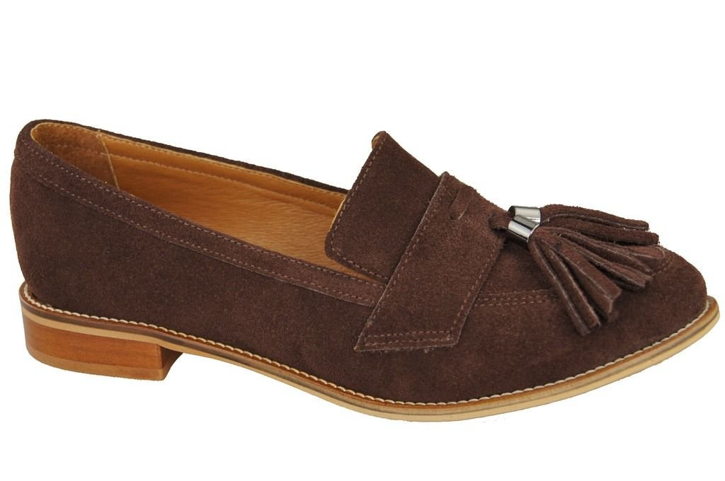 Obuwie Mokasyny Damskie Skóra Naturalna Welurowa Czekoladowy 134 ElitaBut
