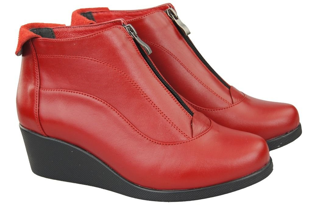 Obuwie Botki Damskie Zima skóra naturalna Czerwone 133 Z ElitaBut