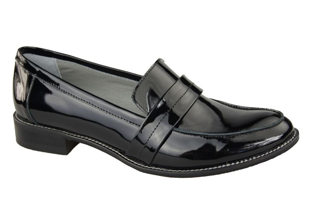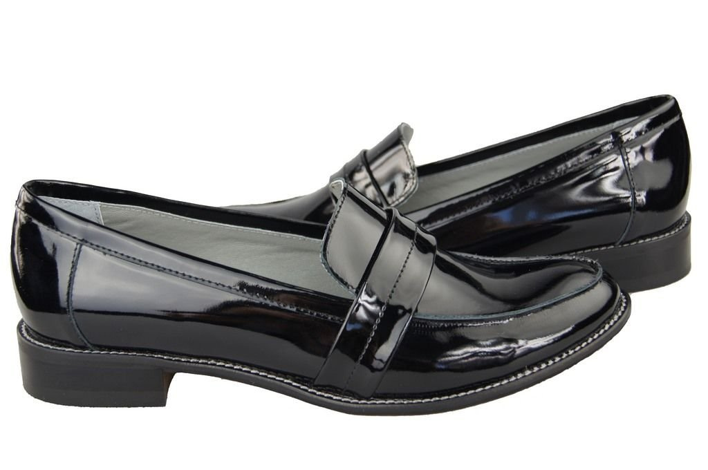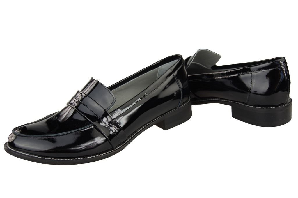 Obuwie Mokasyny Damskie Skóra Naturalna Czarne lakier 139 ElitaBut