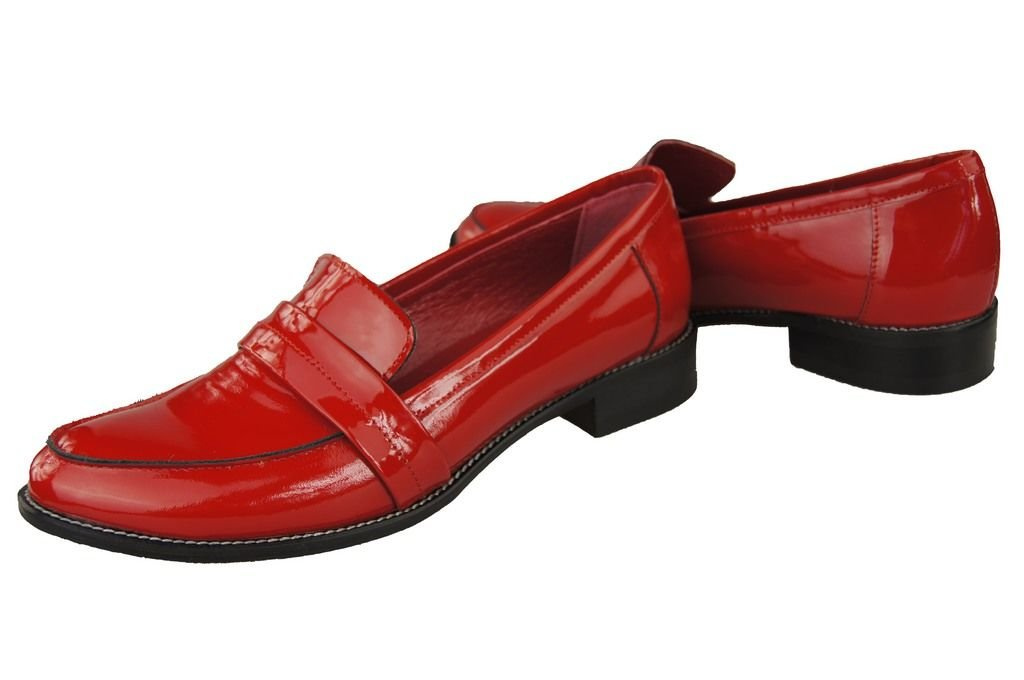 Obuwie Mokasyny Damskie Skóra Naturalna Czerwone lakier 139 ElitaBut
