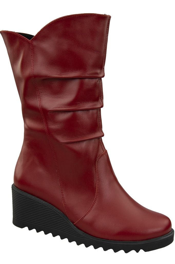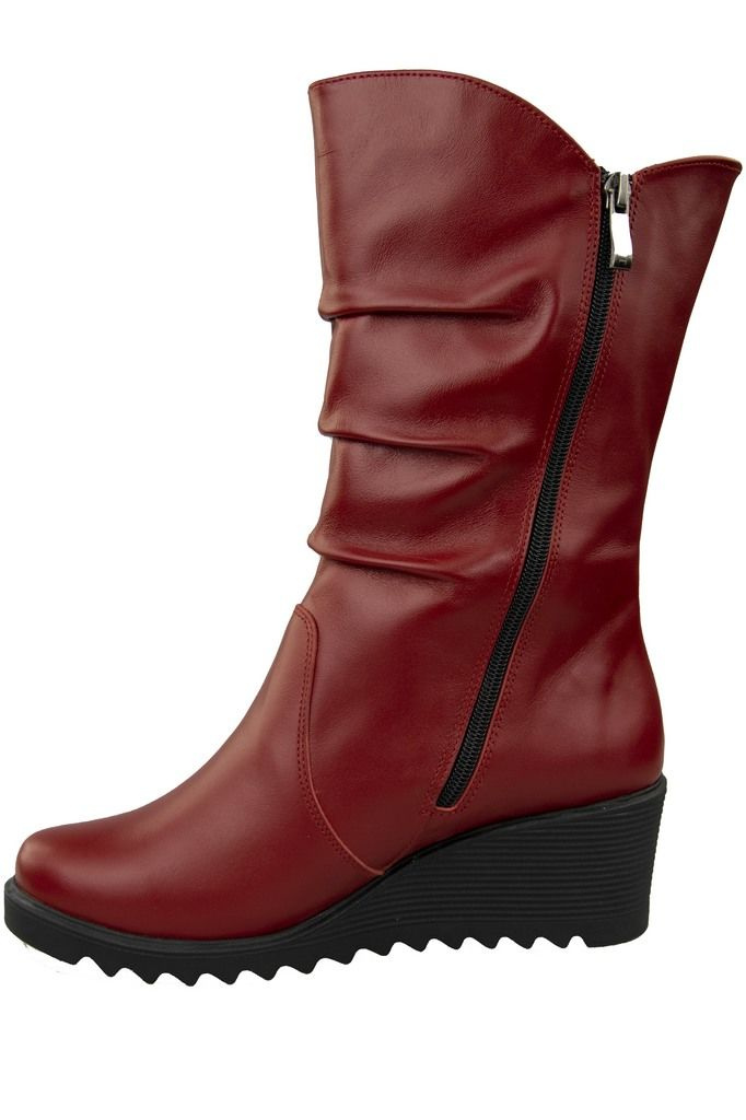 Obuwie Botki Damskie Koturna Zima skóra naturalna Czerwone 140 ElitaBut